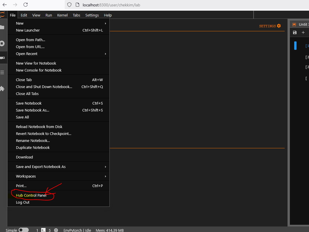 In order to stop the kernel et kill the allocated job go to Hub Control Panel
