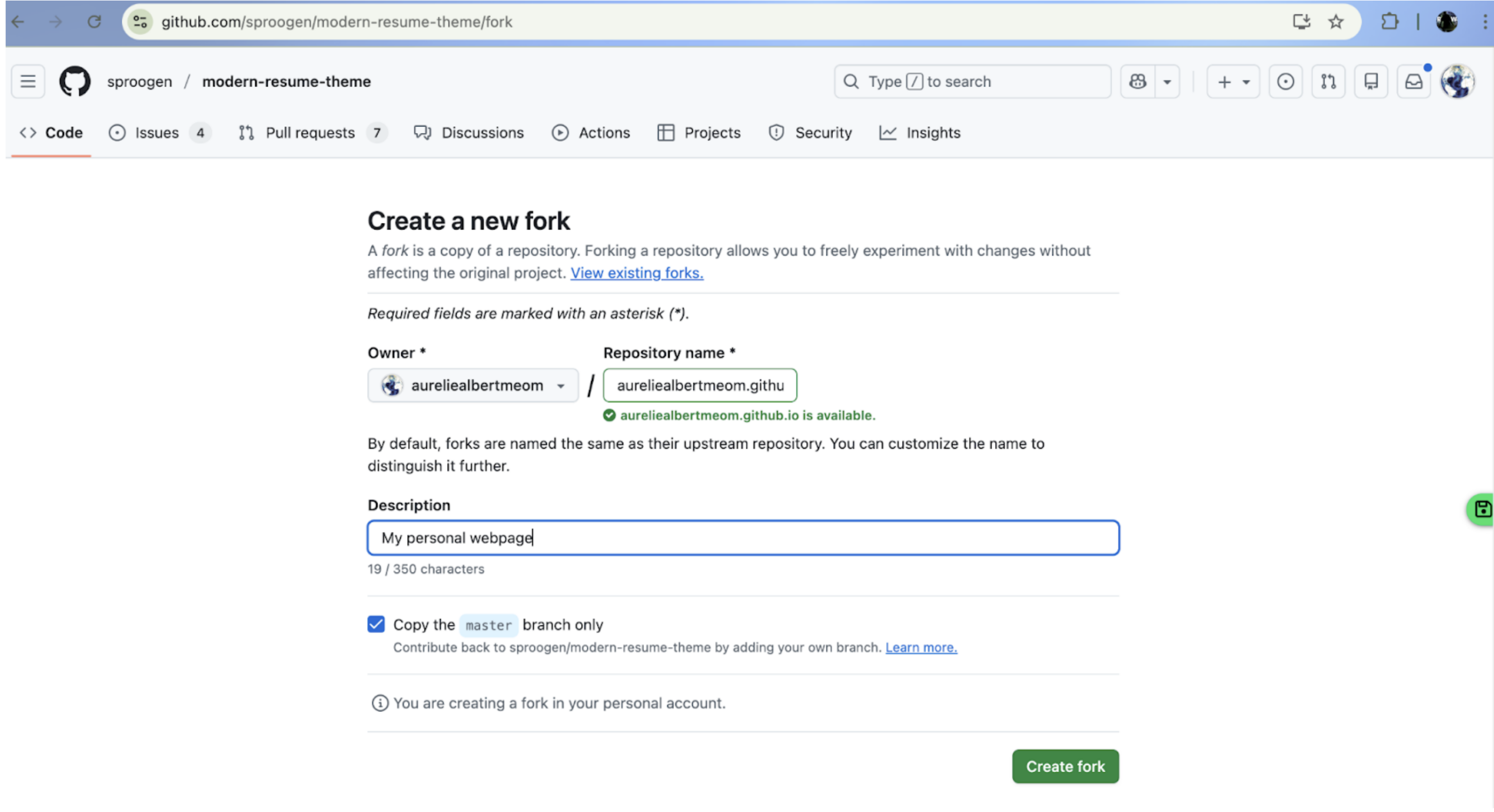 You can now start from my version : aureliealbertmeom/aureliealbertmeom.github.io